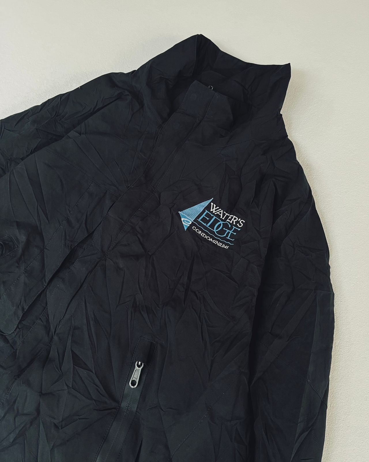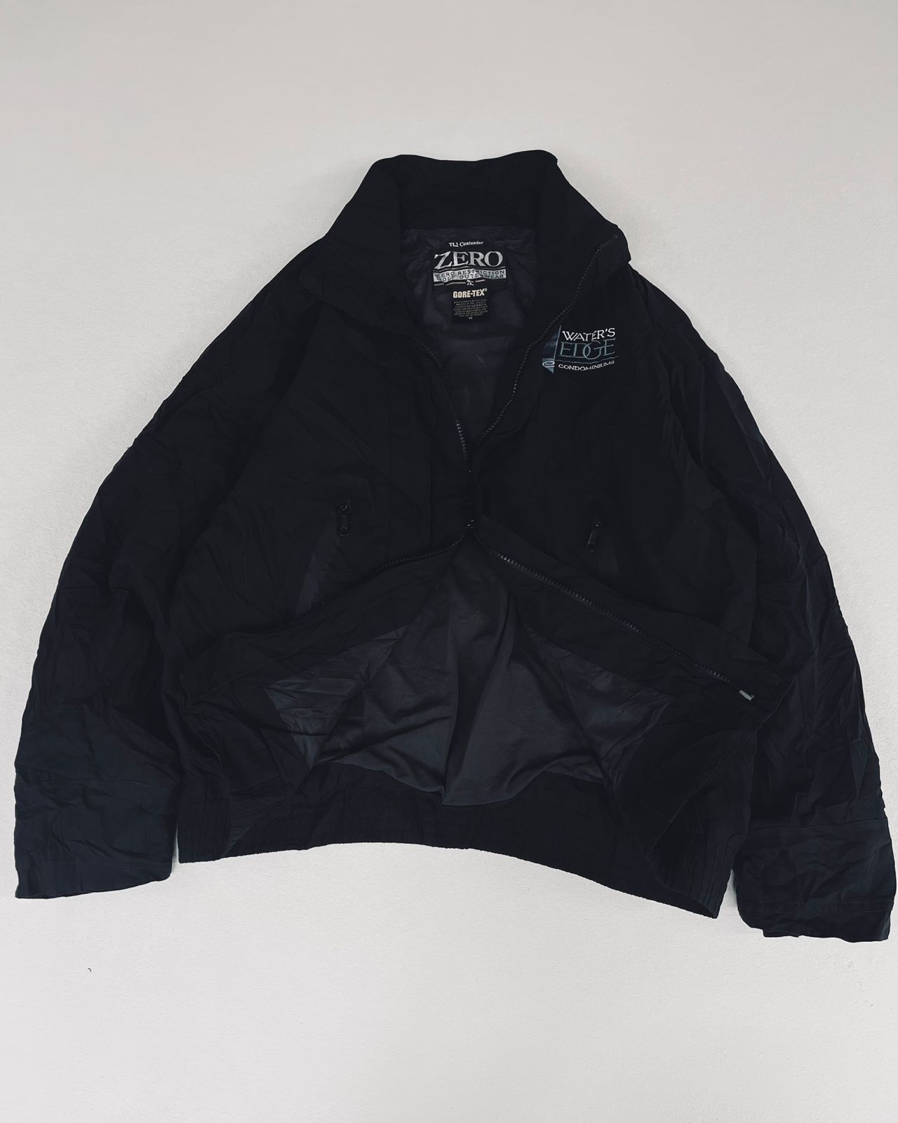 Premium technical golf jacket from Zero Restriction featuring GORE-TEX® fabric for all-weather protection. Lightweight yet insulated, designed for performance, durability, and comfort. Custom embroidered “Water’s Edge Condominiums” logo on chest. Ideal for golf, outdoor activities, and cold weather casual wear.